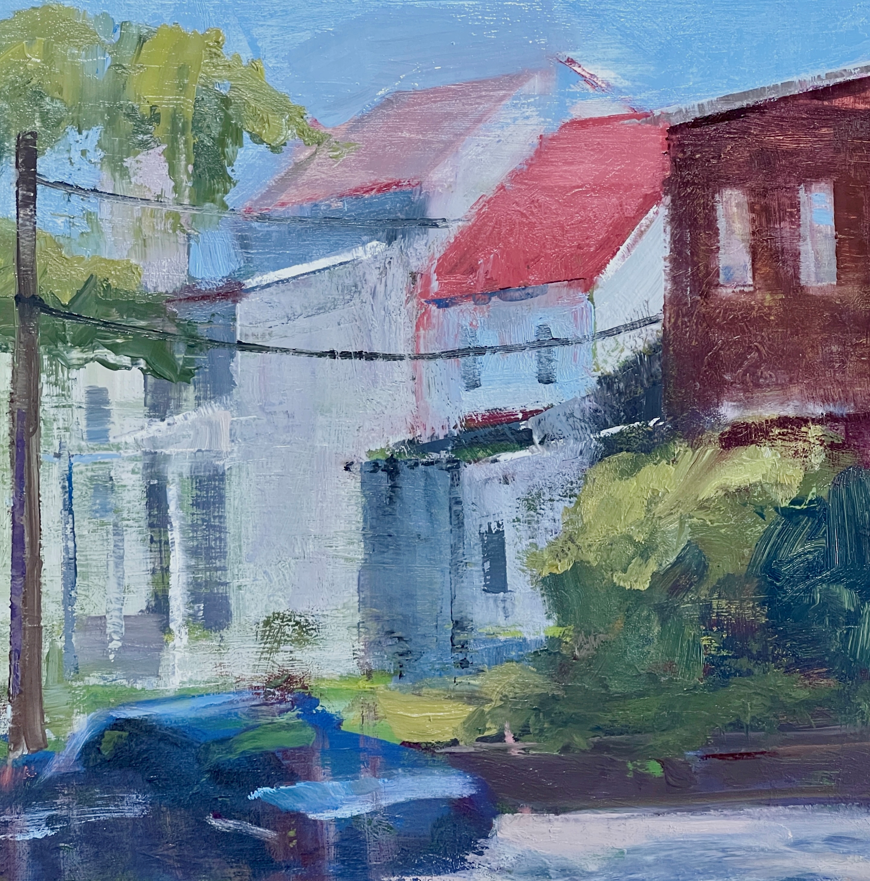 Downtown West Chester, 9 x 9 oil on board (2022)