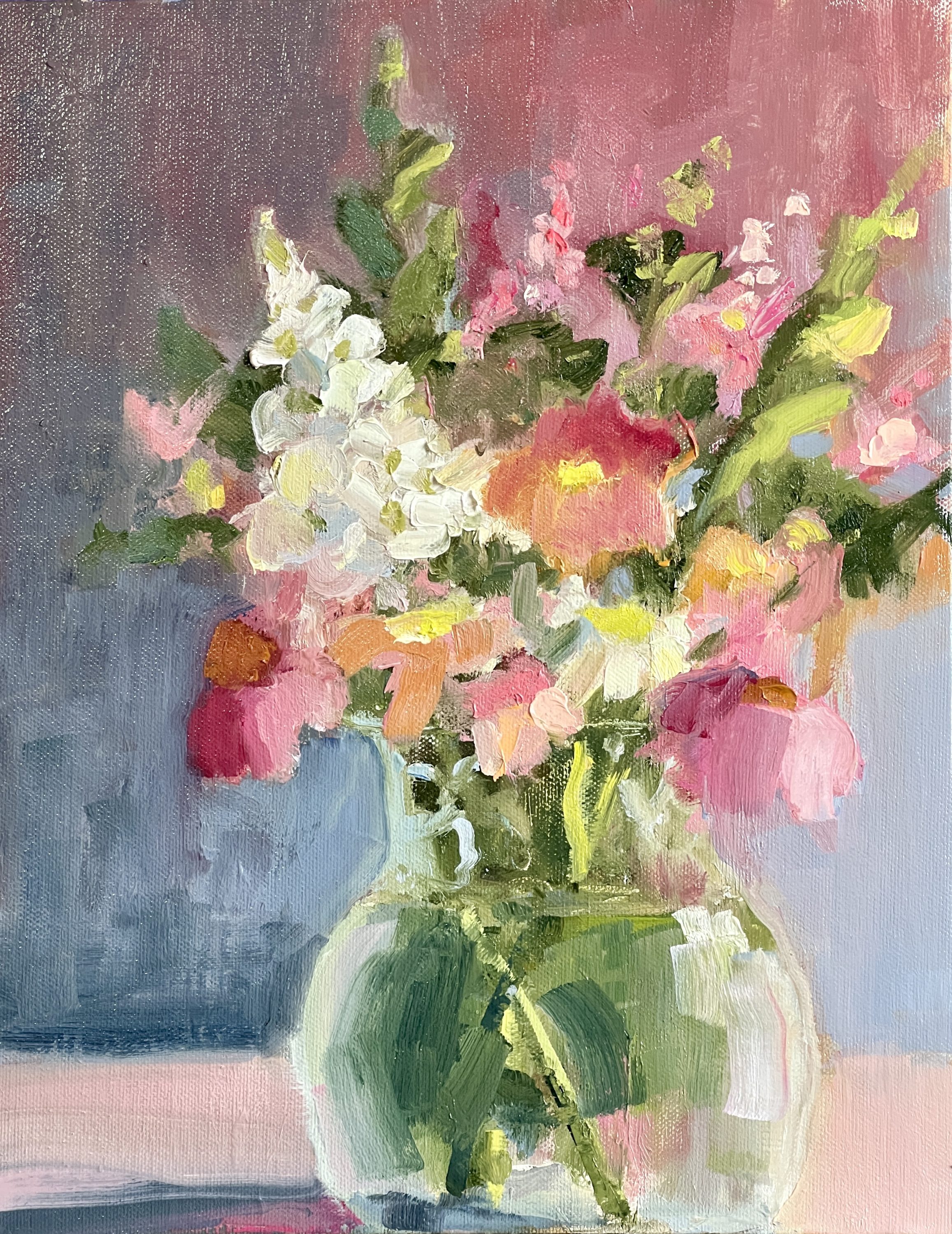 Arrangement with Delphinium, 14 x 11 oil on linen panel (2026)