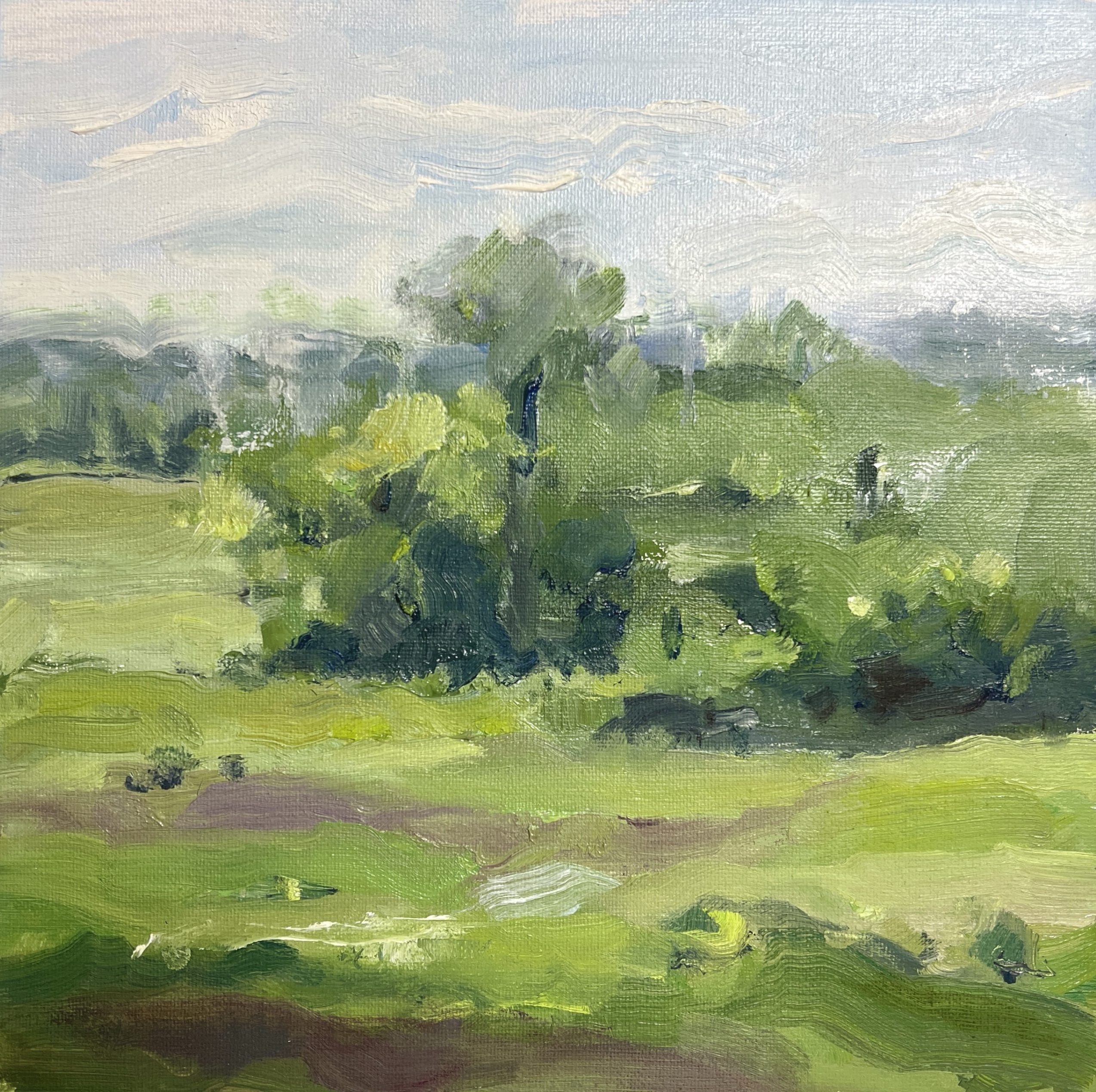 Vermont in August, 9 x 9 oil on board (2022)